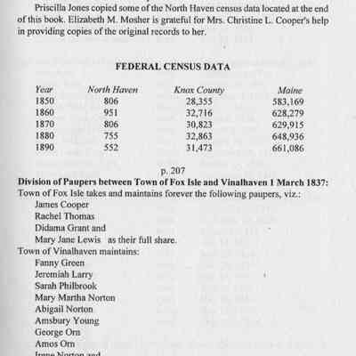 A one volume compilation of the vital records of North Haven, Maine from c.1848 to 1890 and of the census records from 1850 to 1920.