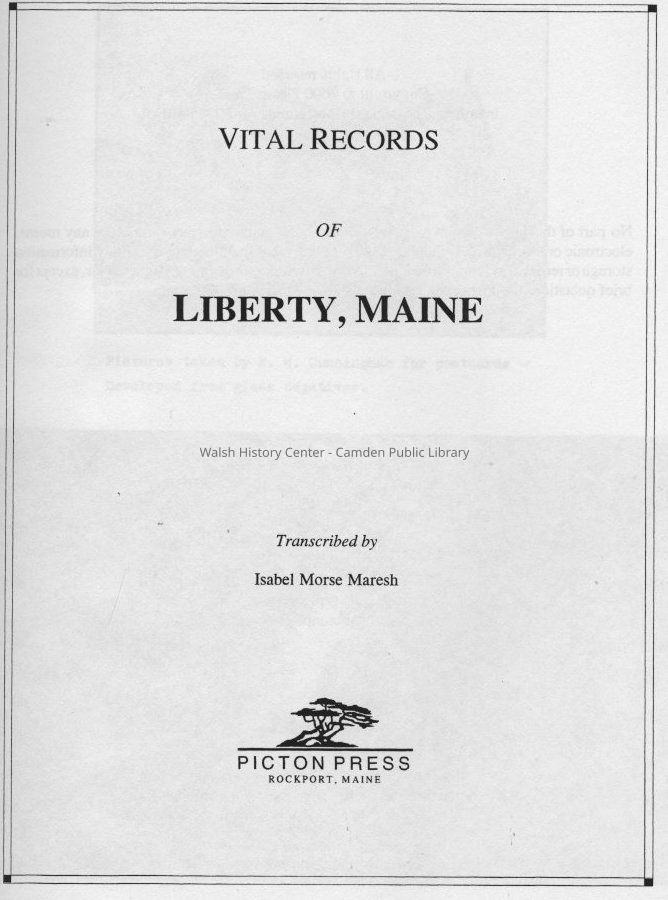 Liberty, Maine, Deaths, Genealogy, Marriages, Vital RecordsOther Names and Numbers