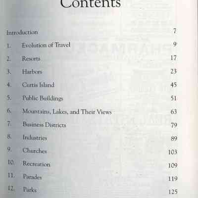 This photographic history is part of the Images of America series which showcases historic images of various towns in the US. The images show people, places and events from the late 1800's to about 1950. Chapters include photographs about the resorts, the harbors, Curtis Island, the lake, the mountains, the downtown areas, industries, churches, recreation, parades and parks.