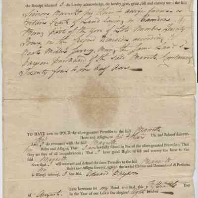 WARRANTY DEED TO SIMON BARRETT REGARDING HIS SALE OF LOT NUMBER TWENTY FOUR IN THE SECOND DIVISION ACCORDING TO NOAH MILLER SURVEY, CAMDEN, MASSACHUSETTS, DATED AUGUST 15, 1800