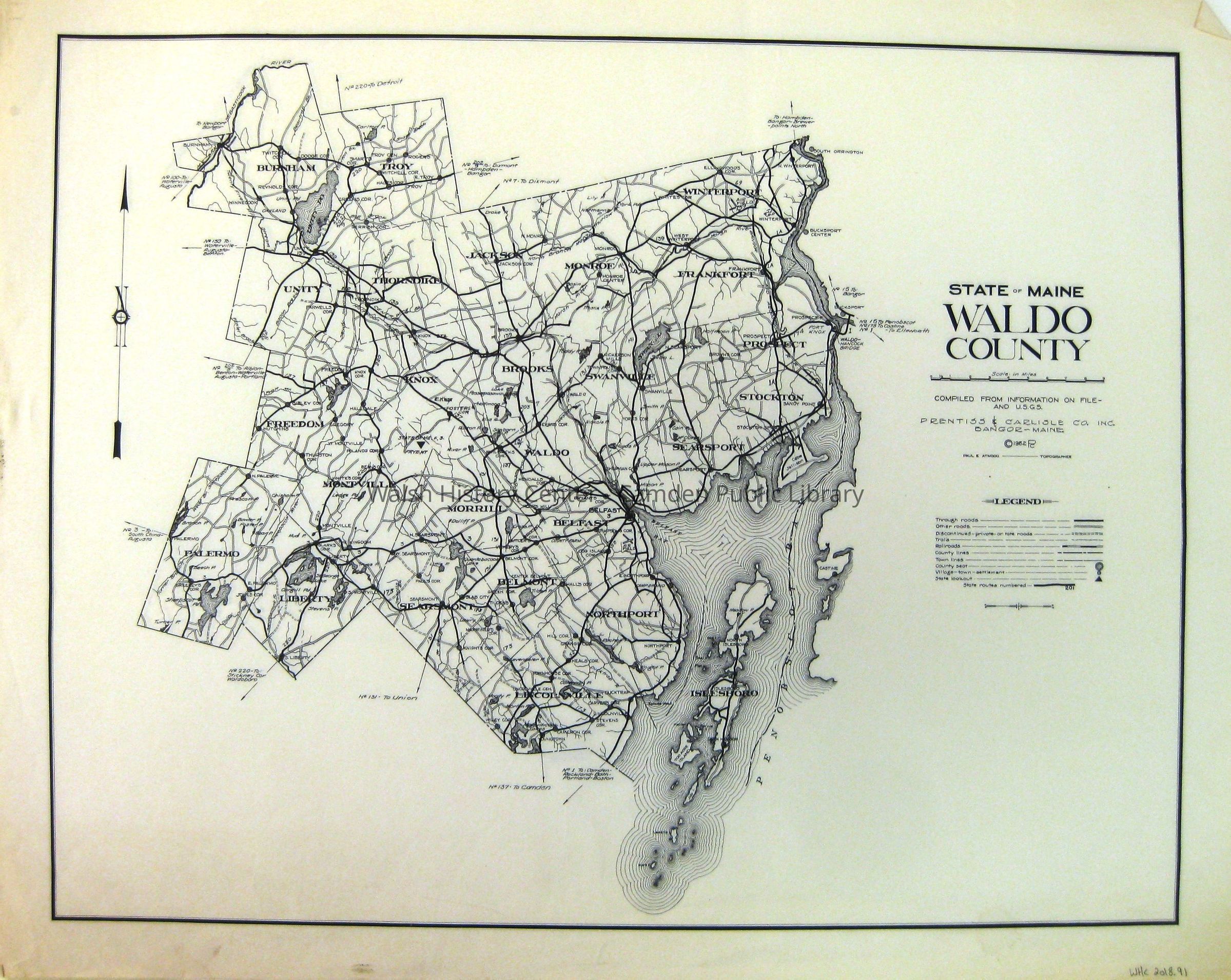 WALDO COUNTY, USGS, Prentiss & Carlisle, Paul E. Atwood, Towns, Roads, Hydrography, MapsArchive Details