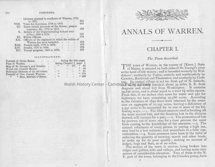 Broad Bay, Cape Cod, Cargil's Expedition, Damariscotta, Keag, Kennebec, King Charles I, Knox County, Machias, Maine, Monhegan Island, Muscongus Bay, New England, New Harbor, New Plymouth, Pemaquid, Penobscot Bay, Pentecost Harbor, Piscataqua, Plymouth Company, Sawkhead, South Thomaston, St. George, St. George River, Waldoboro, War with France, Warren, Warren Powder Manufacturing, Alewives, Deaths, Genealogy, Indians of North America, Justices of the peace, Population, Town officers
