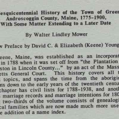 Abenaki Indians, Anasagunticook Indians, Androscoggin and Kennebec Railroad, Androscoggin County, Caniba Indians, Greene, Maine, Pejobscot Indians, Pequawket Indians, Sokoki Indians, Wawenock Indians, Genealogy, Indians of North America, Marriages, Military, Town officers, Valuations