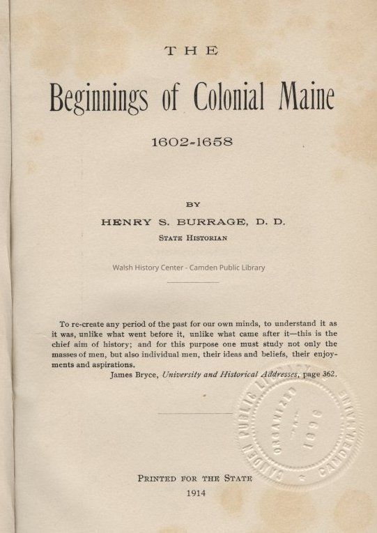 Beginnings of Colonial Maine 1602-1658Entry/Object ID