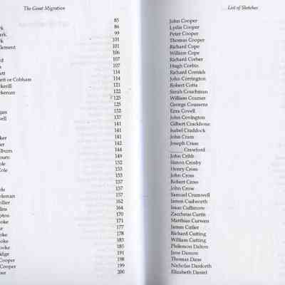 Detailed genealogical sketches of family surnames C-F immigrating to New England 1634- 1635. Indexes are provided by surnames, first names, places and ships.