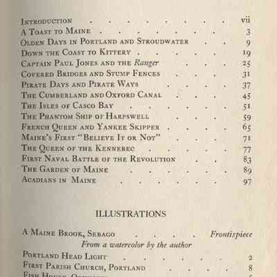 "Unity", Aroostook, Bailey's Island, Cape Elizabeth, Casco Bay, Harpswell, Katahdin, Kennebec River, Kittery, Longfellow House, Machias, Maine, Mount Desert, Penobscot River, Portland Head Light, Saco River, Sebago Lake, Sequin Light, Stroudwater, Wiscasset, PlacesOther Names and Numbers