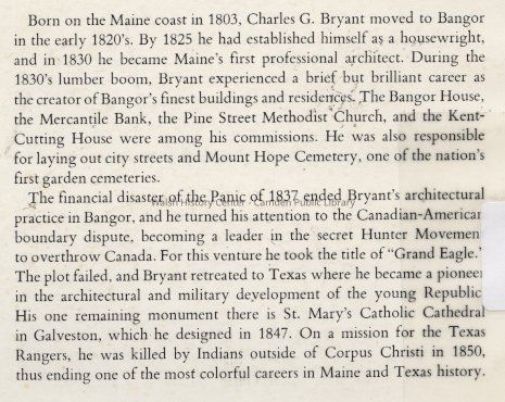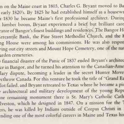 A historical accounting of the life and times of Charles G. Bryant and his influence on architecture in Maine and Texas.