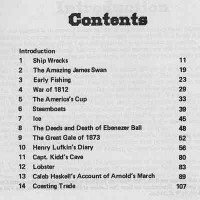 Includes summary and history of shipwrecks, fishing, the War of 1812, details of James Swan, crew members of early America's Cup races, steamboats, Ebenezer Ball, the great gale of 1873, excerpts from Henry Lufkin's Diary, an account of Arnold's March, and trade along the Maine coast. Taken from weekly historical columns published in local papers about the Deer Isle and Stonington area.
