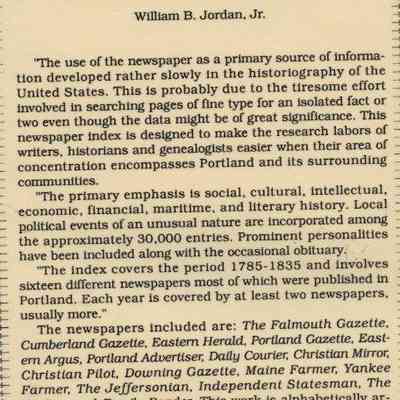 Index to Portland Newspapers, 1785-1835Entry/Object ID