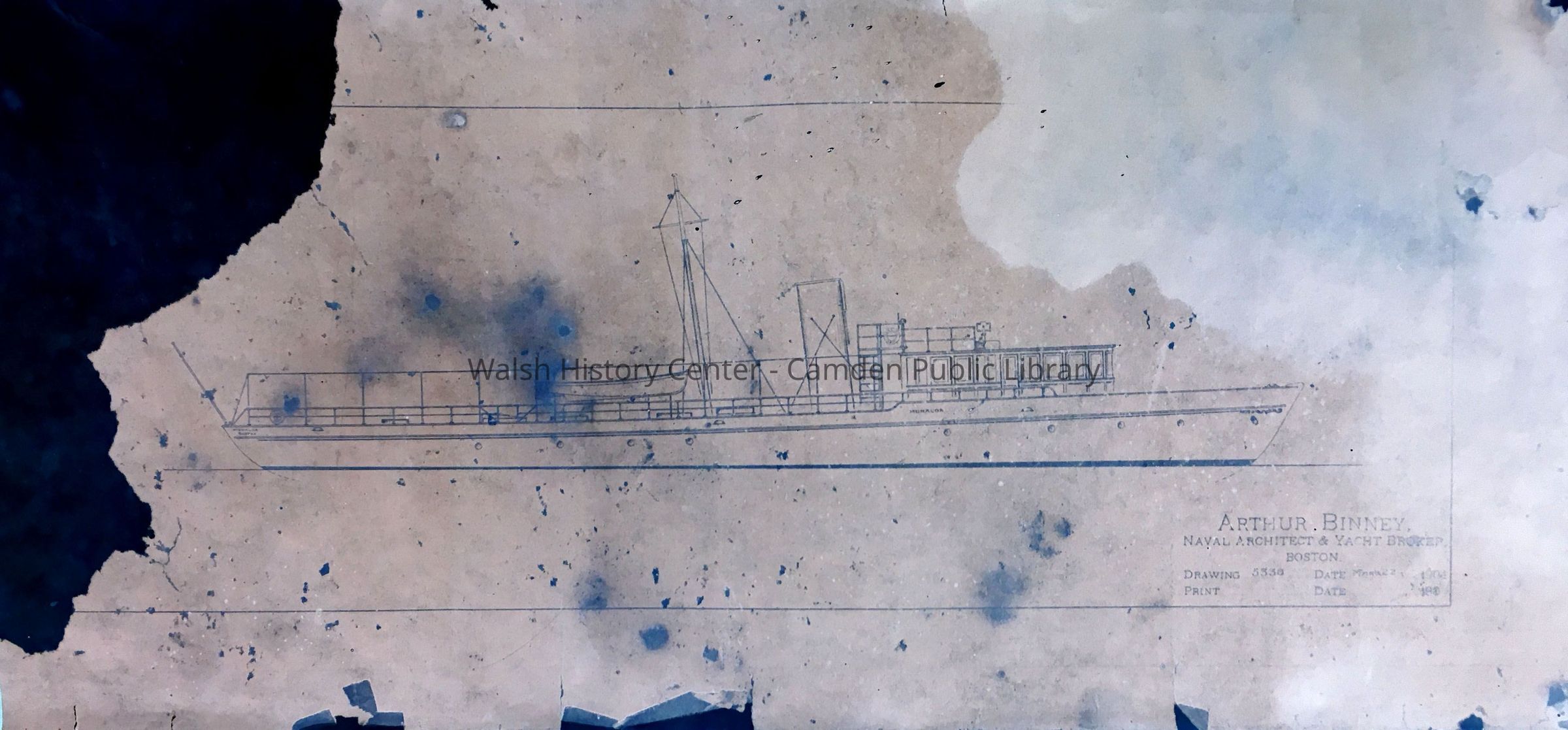 Blueprint drawing of ship "Monaloa" by Arthur Binney, naval architect & yacht broker, dated March 22, 1904Collection