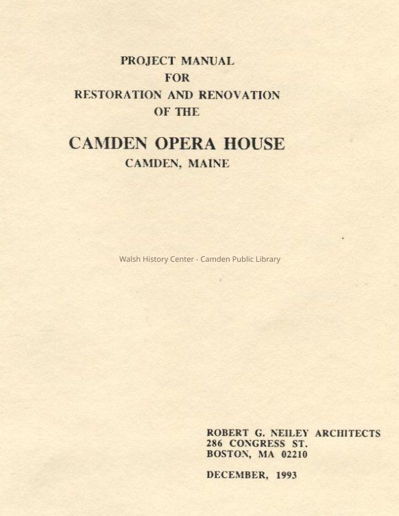 Manual for restoration of the Camden Opera House (1993).