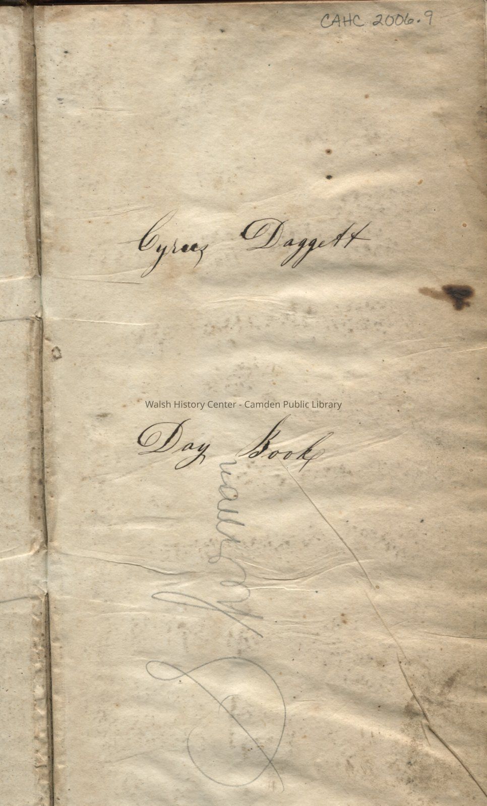 Ledger belonging to Cyrus Daggett (1819-1905) of Camden, Maine.