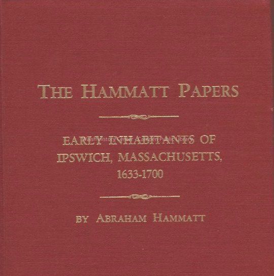 The Hammatt Papers Early Inhabitants of Ipswich, Massachusetts, 1633 - 1700.Entry/Object ID