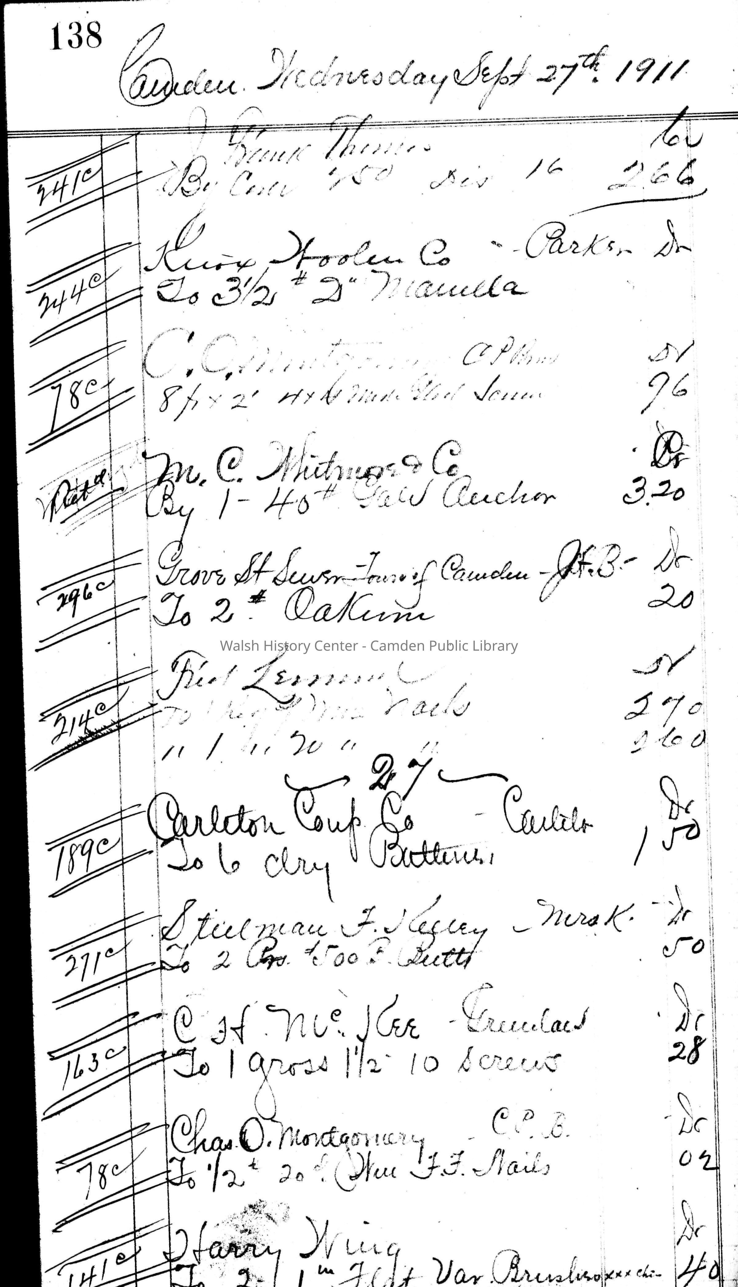 Curtis Hardware daily ledger book August 9, 1911 to October 23, 1911.Collection