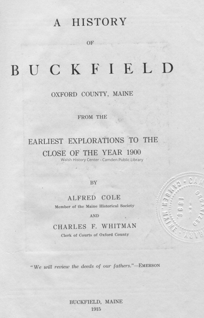 History of the town of Buckfield, Oxford County, Maine (1776-1900).Collection