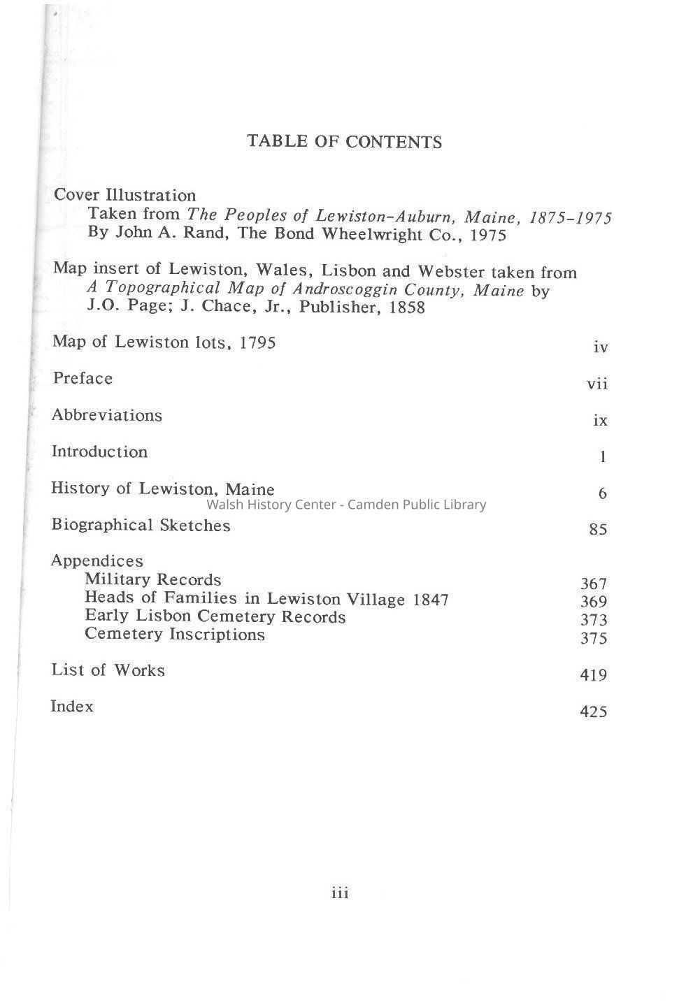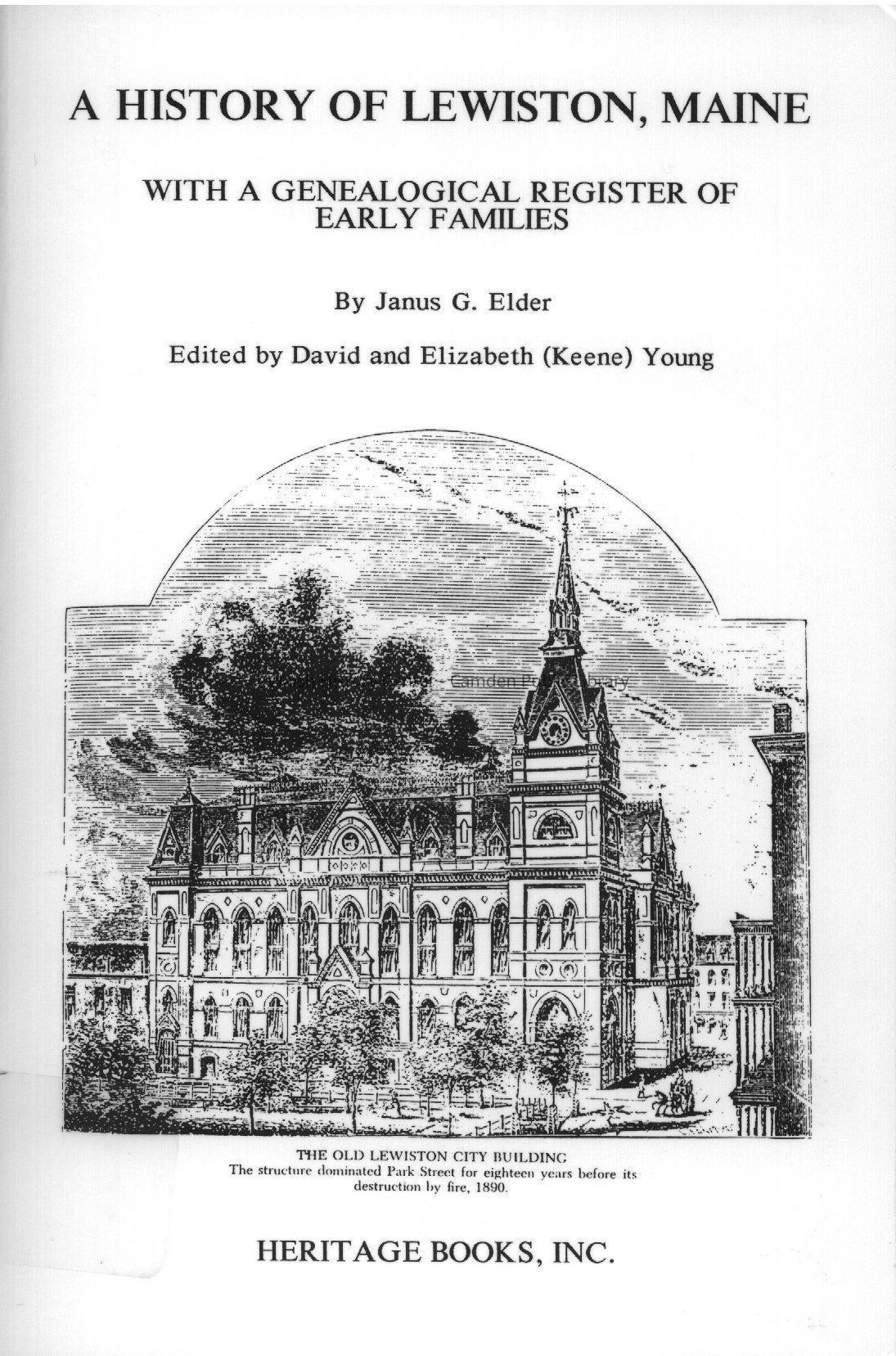 Androscoggin, Androscoggin and Kennebec Railroad, Bates College, Cowan Woolen Company, Lewiston, Lewiston Bobbin Shop, Lewiston Falls Water-Power Company, Lewiston Machine Company, Lewiston Monumental Works, Maine, Pejepscot, Pingree & Co., Genealogy, Town officers
