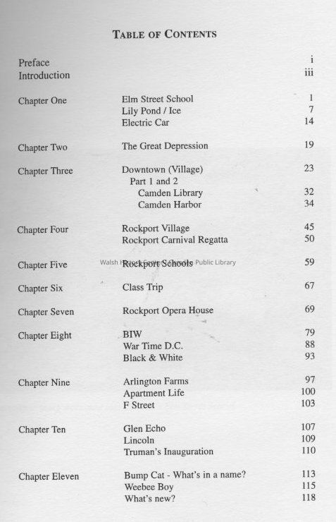 Bath Iron Works, Camden, Carnival Regatta, CCC Camp (Civilian Conservation Corps), Comique Theatre, Elm Street School, Lily Pond, Maine, Rockport, Rockport High School - Class of 1940, Rockport Opera House, World War IIOther Names and Numbers