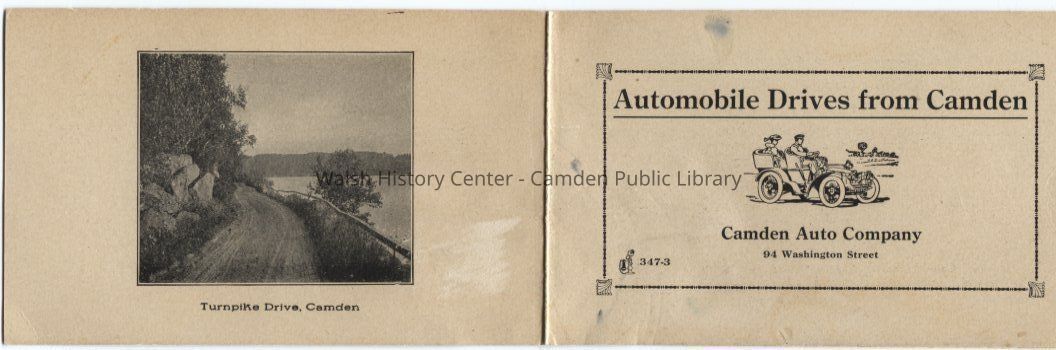 Advertising booklet for the Camden Auto Company. Lists prices for scenic drives in small cars.Collection