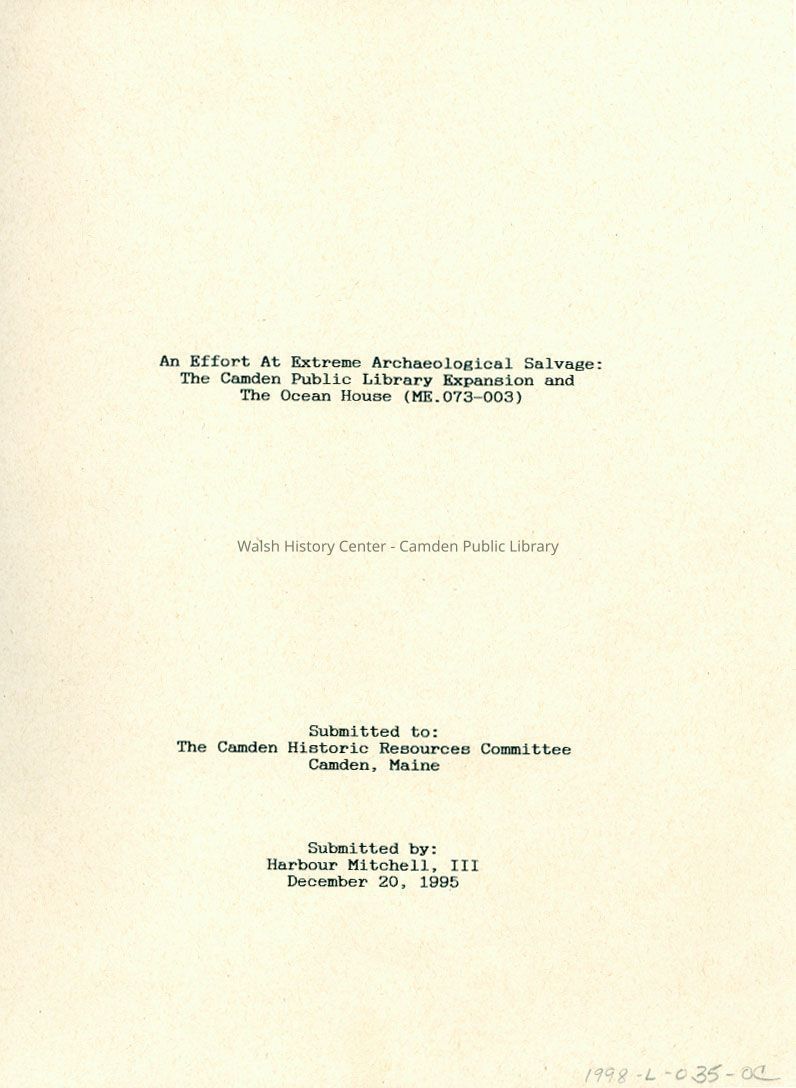 An Effort At Extreme Archaeological Salvage: The Camden Public Library Expansion and The Ocean HouseEntry/Object ID