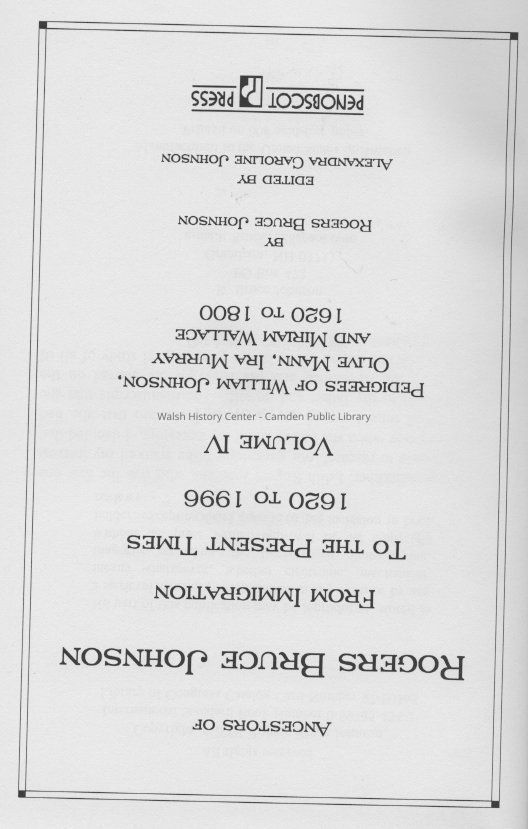 Ancestors of Rogers Bruce Johnson From Immigration to the Present Times 1620-1996. Volume 4.Entry/Object ID