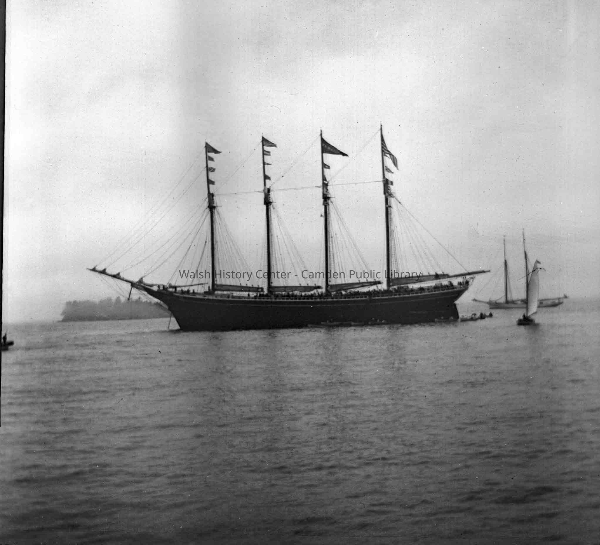 Photograph of the launching of the schooner "Anna Murray" from the Holly M. Bean shipyard in July 1899. Negro Island (now Curtis Island) is visible in the background.Collection