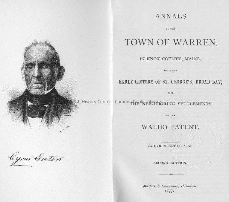 Broad Bay, Cape Cod, Cargil's Expedition, Damariscotta, Keag, Kennebec, King Charles I, Knox County, Machias, Maine, Monhegan Island, Muscongus Bay, New England, New Harbor, New Plymouth, Pemaquid, Penobscot Bay, Pentecost Harbor, Piscataqua, Plymouth Company, Sawkhead, South Thomaston, St. George, St. George River, Waldoboro, War with France, Warren, Warren Powder Manufacturing, Alewives, Deaths, Genealogy, Indians of North America, Justices of the peace, Population, Town officers
