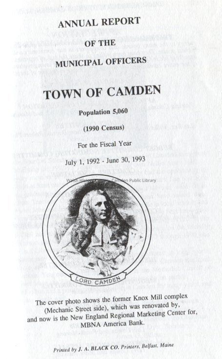 Camden, Town Reports, Town budgets, Town officersPublication Details