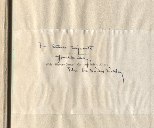 Collected Poems of Edna St. Vincent Millay. Paper with the inscription "For Ethel's Elizabeth, Affectionately, Edna St. Vincent Millay" is pasted on the inside page. The name "Ethel Knight Fisher, Dec. 1941" is also written on the inside cover.