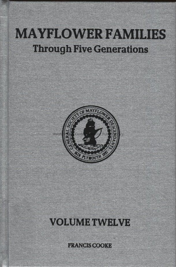 Volume 12 of the Mayflower Families Through Five Generations series. This volume records the descendants of Francis Cooke, born after 1582 in England and died 7 April 1663 in Plymouth. He was one of the signers of the Mayflower Compact in 1620. He married Hester Mahieu of Canterbury, England.