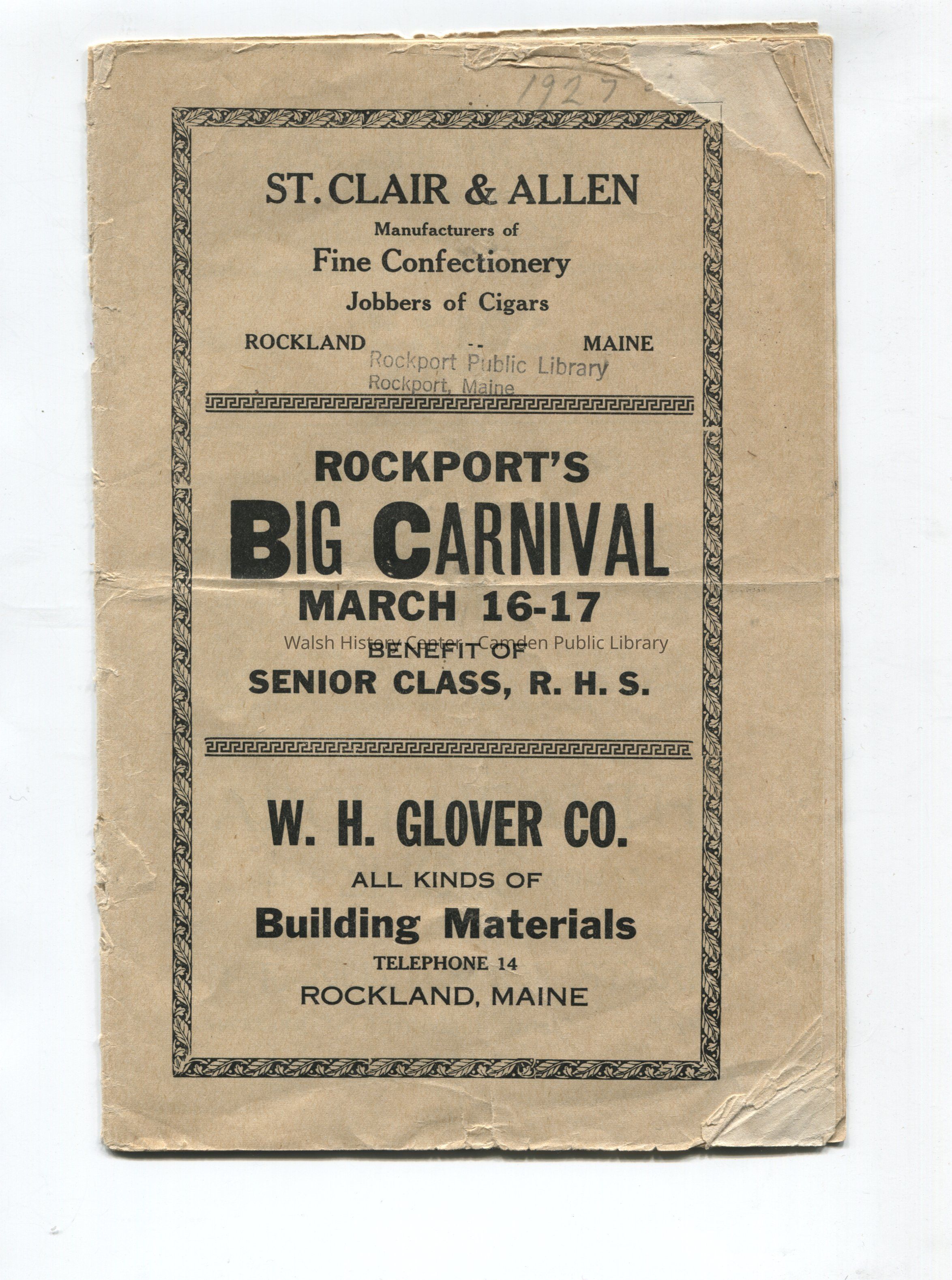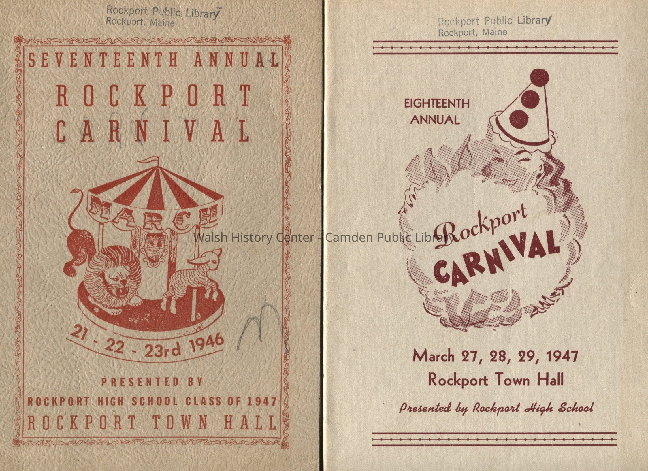 Fifteen programs from the Rockport Carnival / Regatta and Sportsmens Show for the years 1927,1930, 1932, 1934-1941, 1946-1948, and 1952.