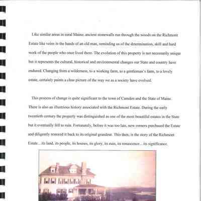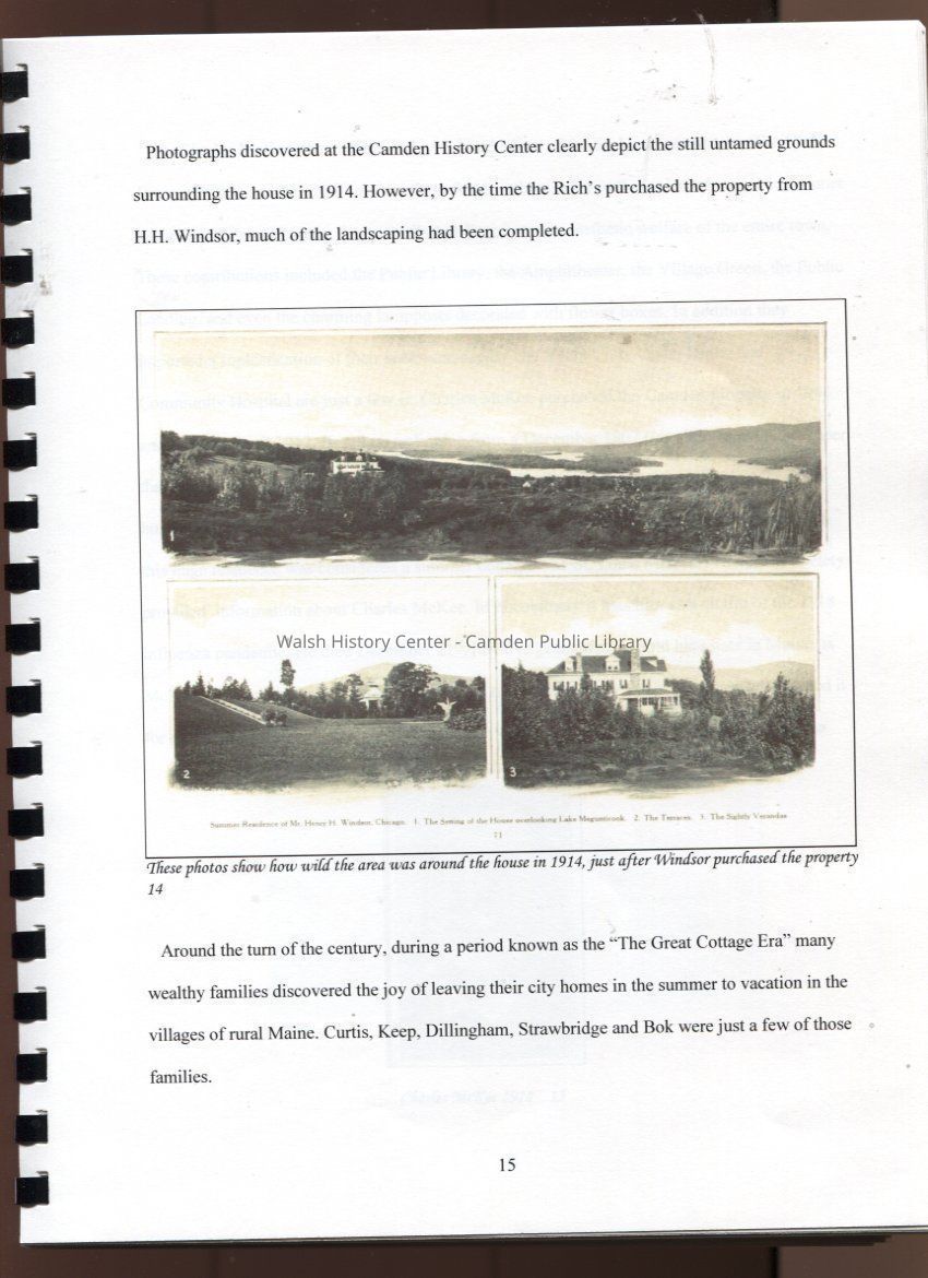History of "Richmont," the Rich family estate on Rt. 105 in Hope, Maine. Purchased in 1991 by singer Don McLean, it is now called by its former name "Lakeview." Built circa 1907, the property was purchased in 1914 by Henry Haven Windsor, a wealthy businessman from Chicago. Upon Windsor's death from influenza, Walter J. Rich, Sr. of New York City bought the 180-acre property in 1924 as a summer home and renamed it "Richmont," and the property remained in the Rich family until 1966.