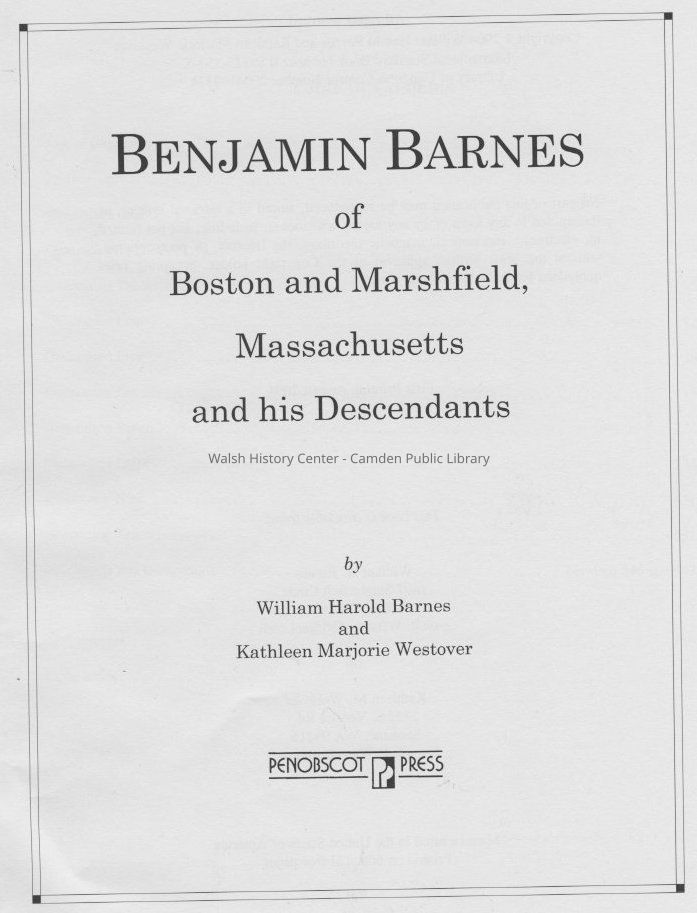 Benjamin Barnes of Boston and Marshfield, Massachusetts and his DescendantsEntry/Object ID