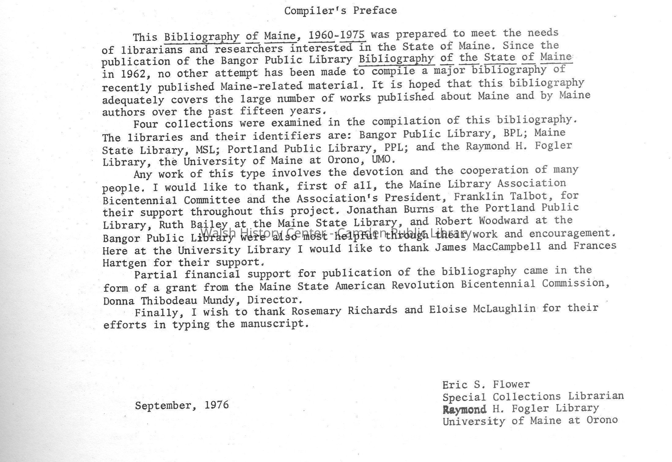 Bibliography of Maine related materials prepared for librarians and researchers from 1960 - 1975.