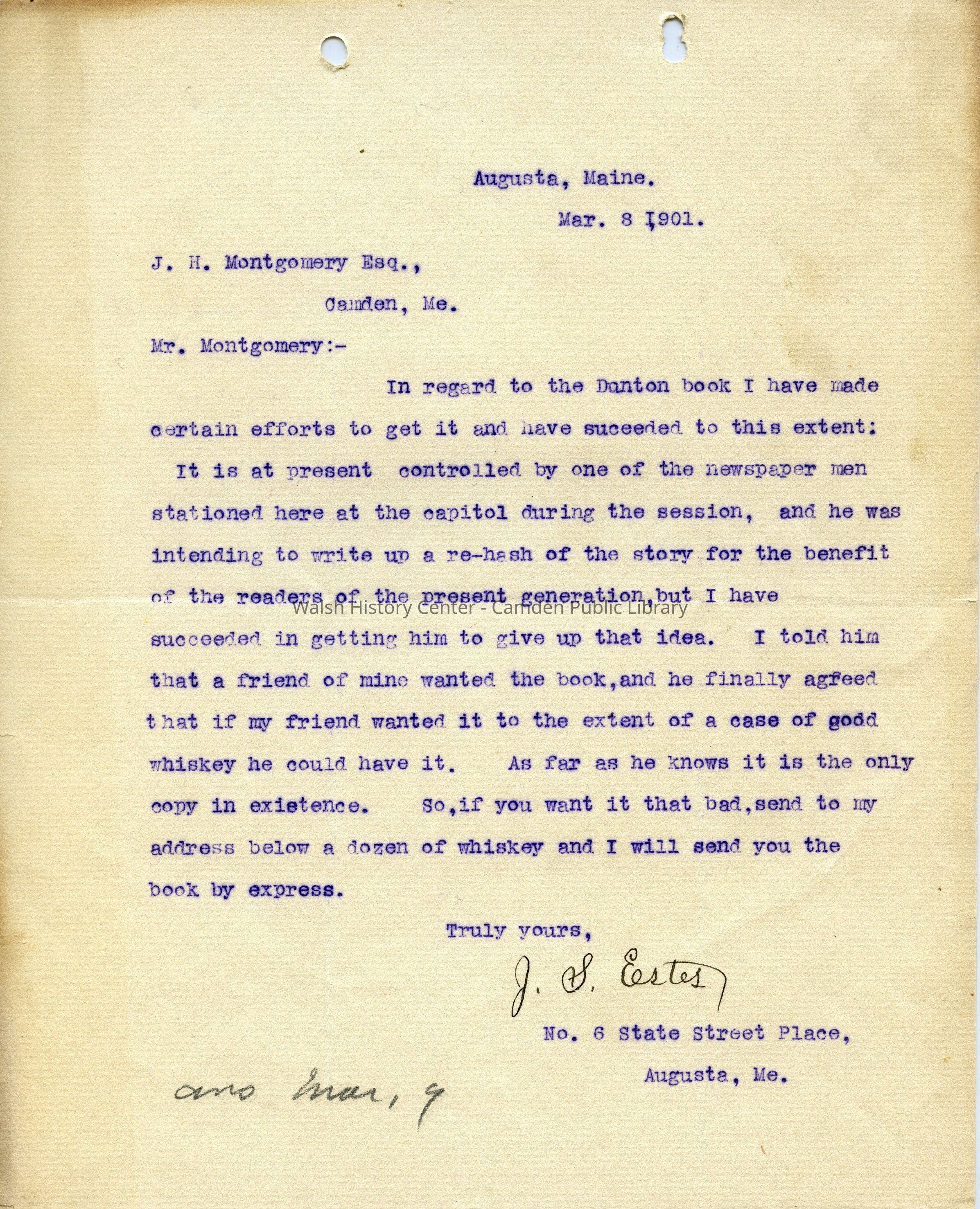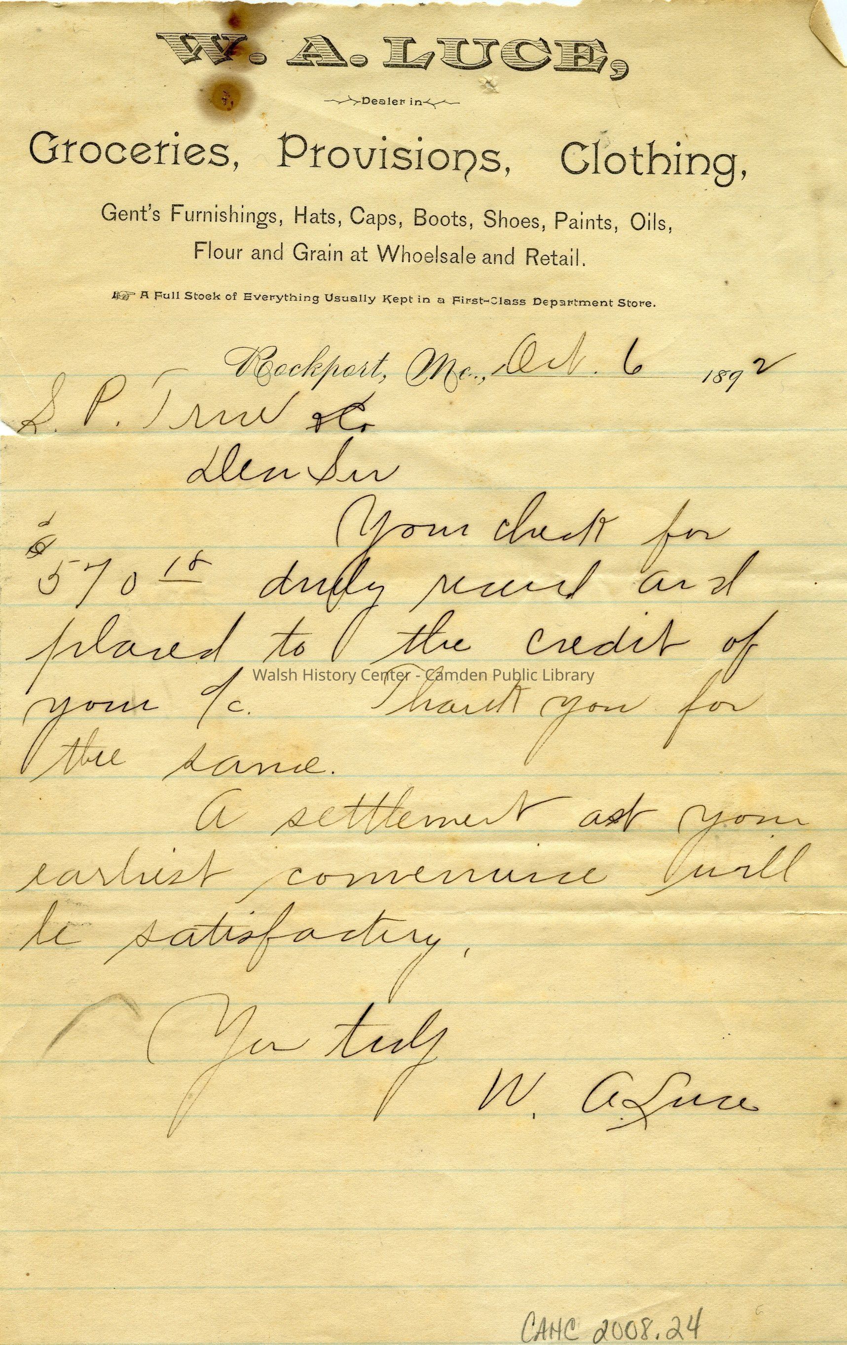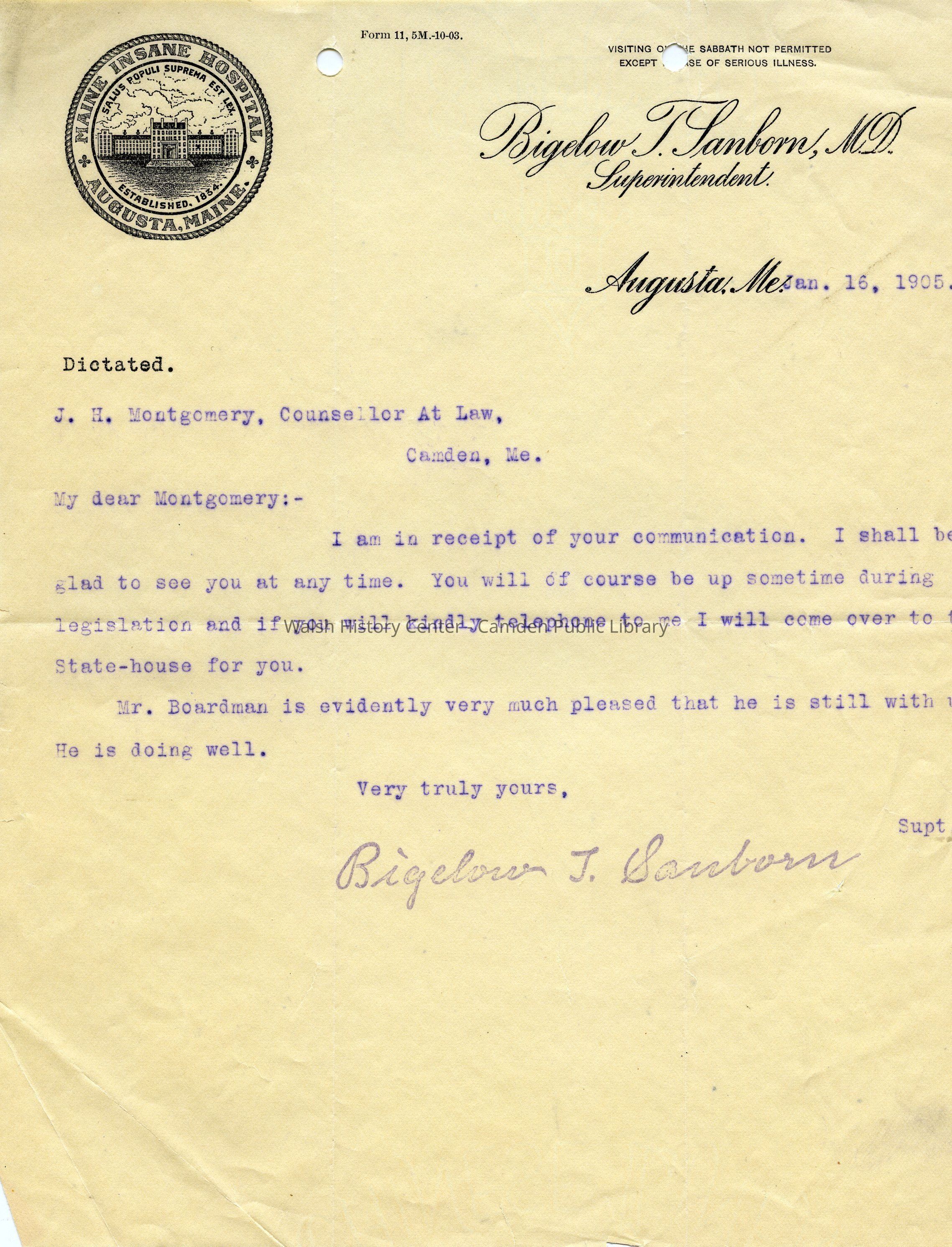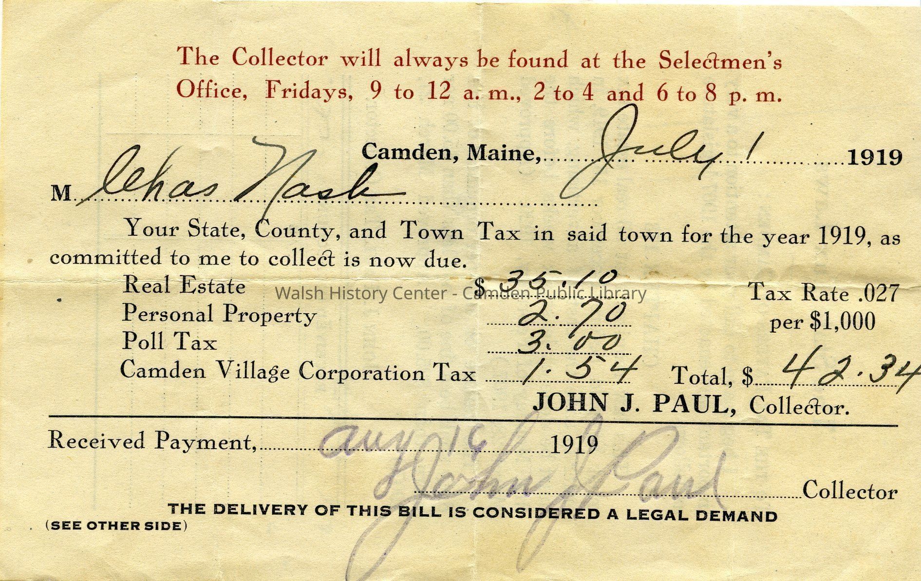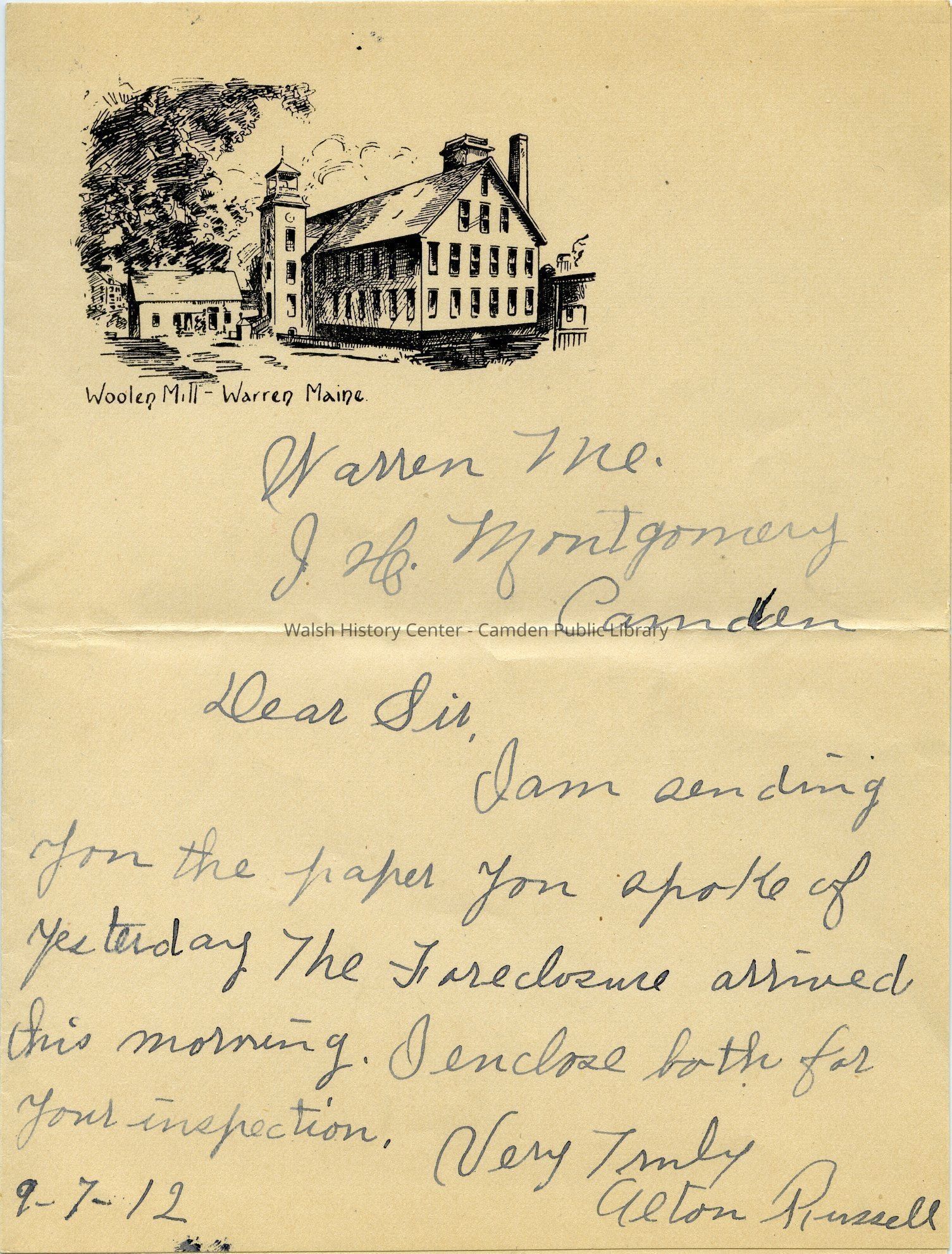 Contains billheads, stationery, bills, letterheads, and receipts from several Camden area businesses. These items date from the 1880's through the 1950's. Partial list of businesses represented: G.W. Achorn; Allen Insurance Agency; Ayers Market; Bay View House; Bay View Street Garage; Boynton's Pharmacy; Brown & Hobbs lumber; Brown's Market; Camden Anchor-Rockland Machine Co.; Camden & Rockland Water Company; Camden Farmer's Union; Camden Lumber Company; Camden Publishing Company; Camden Yacht Building and Railway Company; Carleton, Pascal & Co.; J.C. Curtis Hardware; Follansbee & Wood; Haskell & Corthell; J.H. Hobbs Company; Lenfest's Automotive Service; J.L. Locke; Maiden Cliff Rebekah Lodge; Maine Insane Hospital; The Megunticook Press; A.H. Parsons; Pendleton Dairy; S.G. Ritterbush, contractor; Rockland, Thomaston & Camden Street Railway; S.E. & H.L. Shepherd Company; TalbotCollection