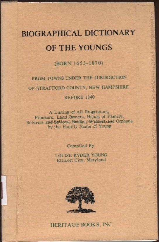 A listing of all proprietors, pioneers, land owners, heads of family, soldiers and sailors, brides, widows and orphans by the family name of Young in Strafford County, New Hampshire. Includes index of Young's and other names.
