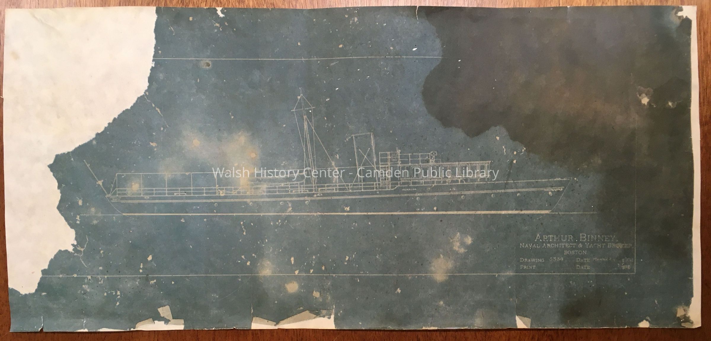 Blueprint drawing of ship "Monaloa" by Arthur Binney, naval architect & yacht broker, dated March 22, 1904Collection