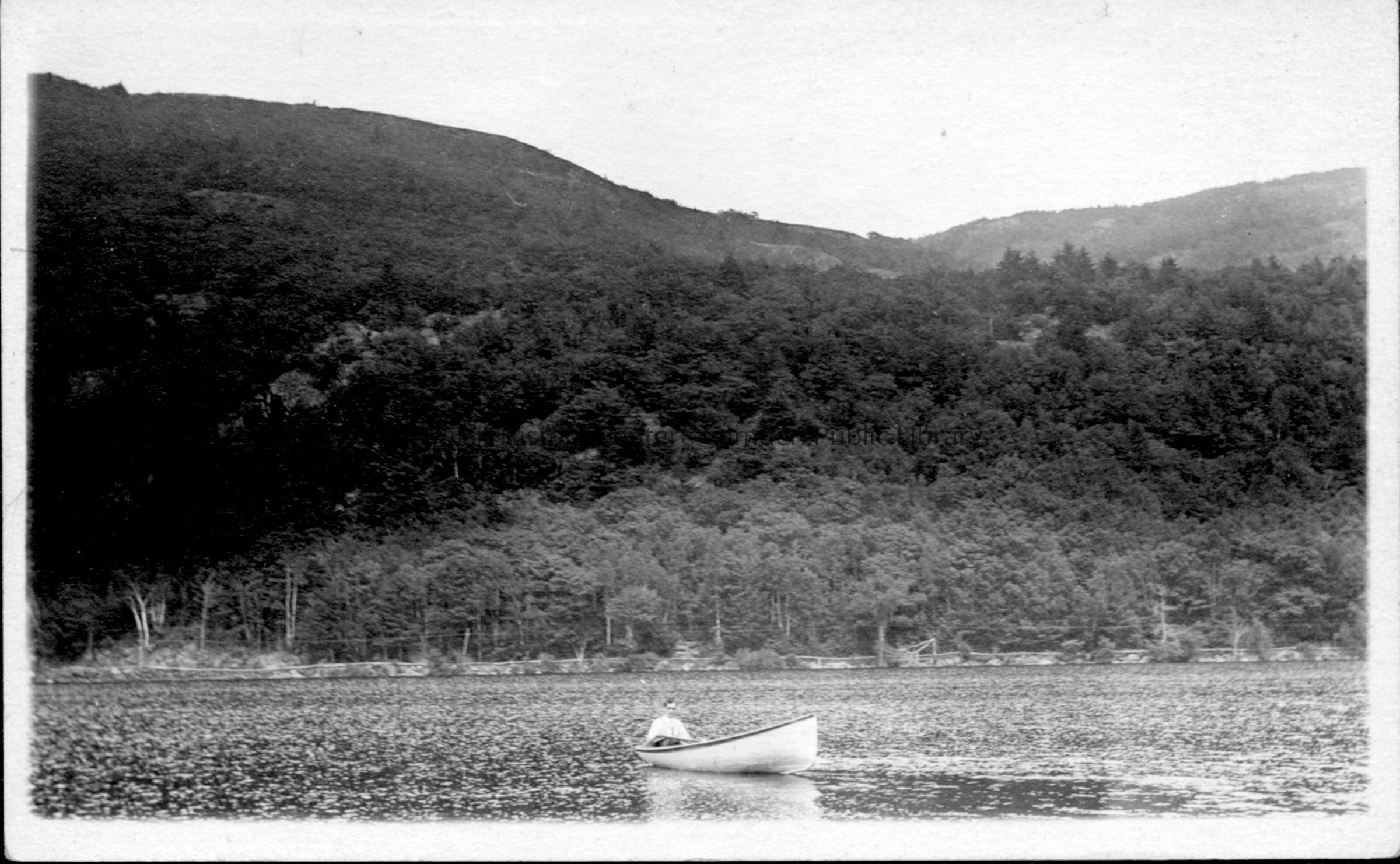 On the back is written: "This view taken from veranda of Sadie's cottage on the shore. Turnpike road across lake."Collection