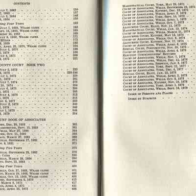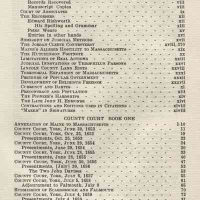 Maine Province and Court Records, Volume 2, published by the Maine Historical Society in 1931. Volume 2 represents records from "York County under the control of Massachusetts in disregard of the Gorges patent."