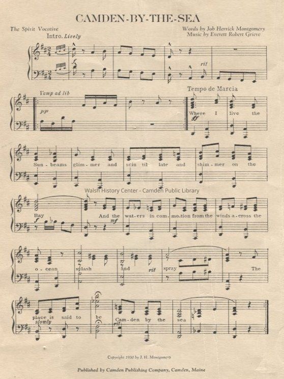 2 copies of the "Camden By the Sea: The Spirit Vocative" sheet music written by Job Herrick Montgomery and Everett Robert GrieveCollection