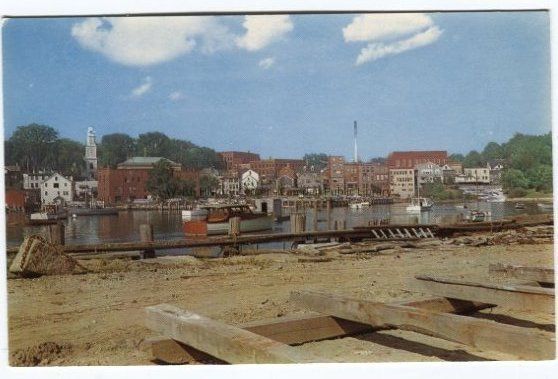 Postcard of Baptist Church and business district from the Camden shipyard.Collection