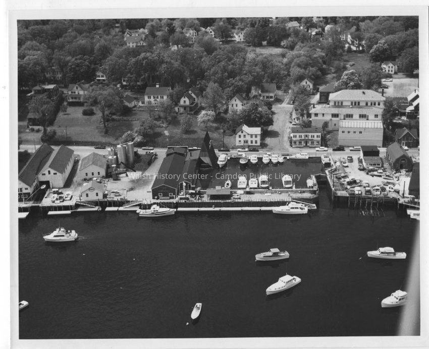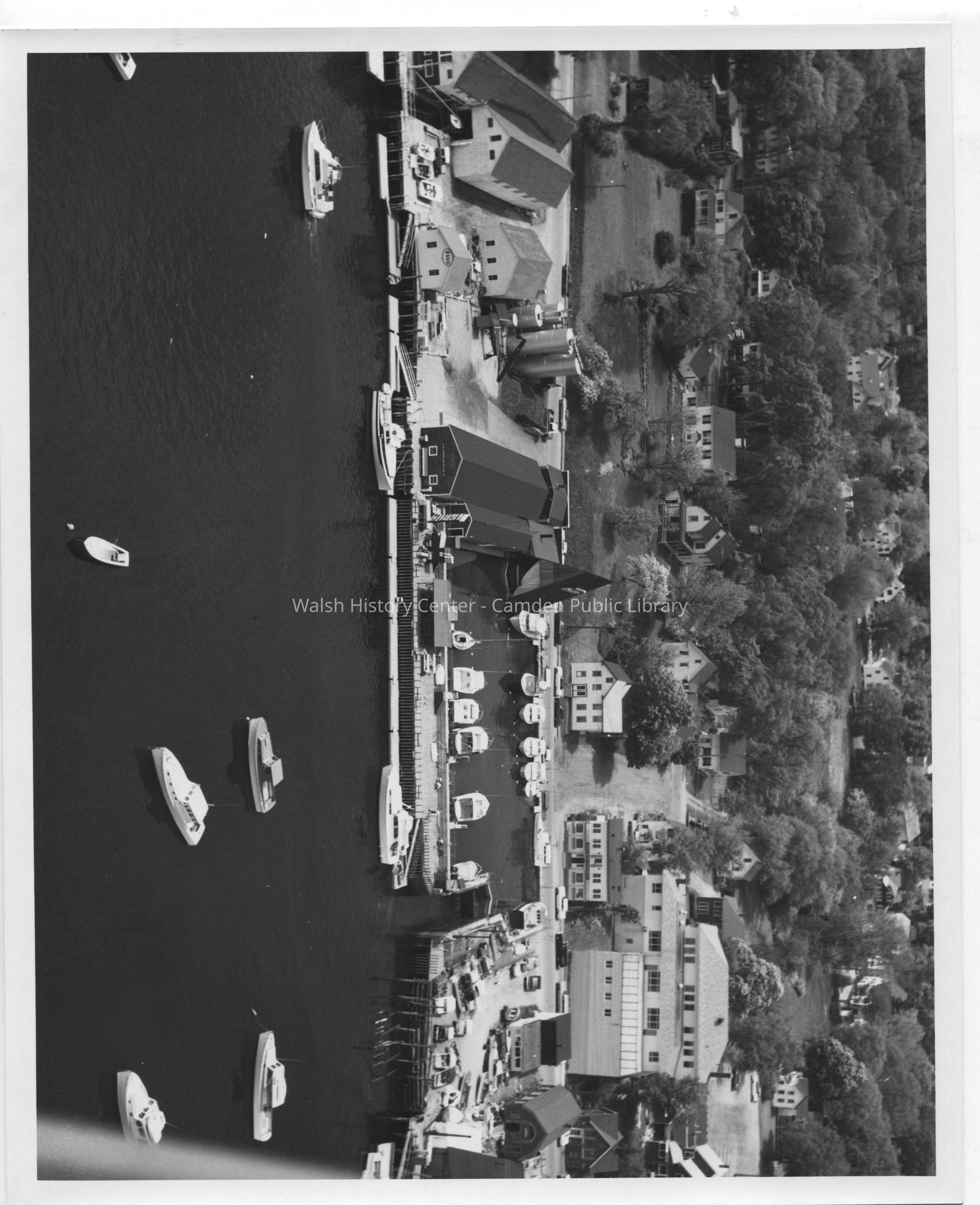 Aerial photograph of Camden harbor and Tibbetts Lok Marina circa 1954.Collection
