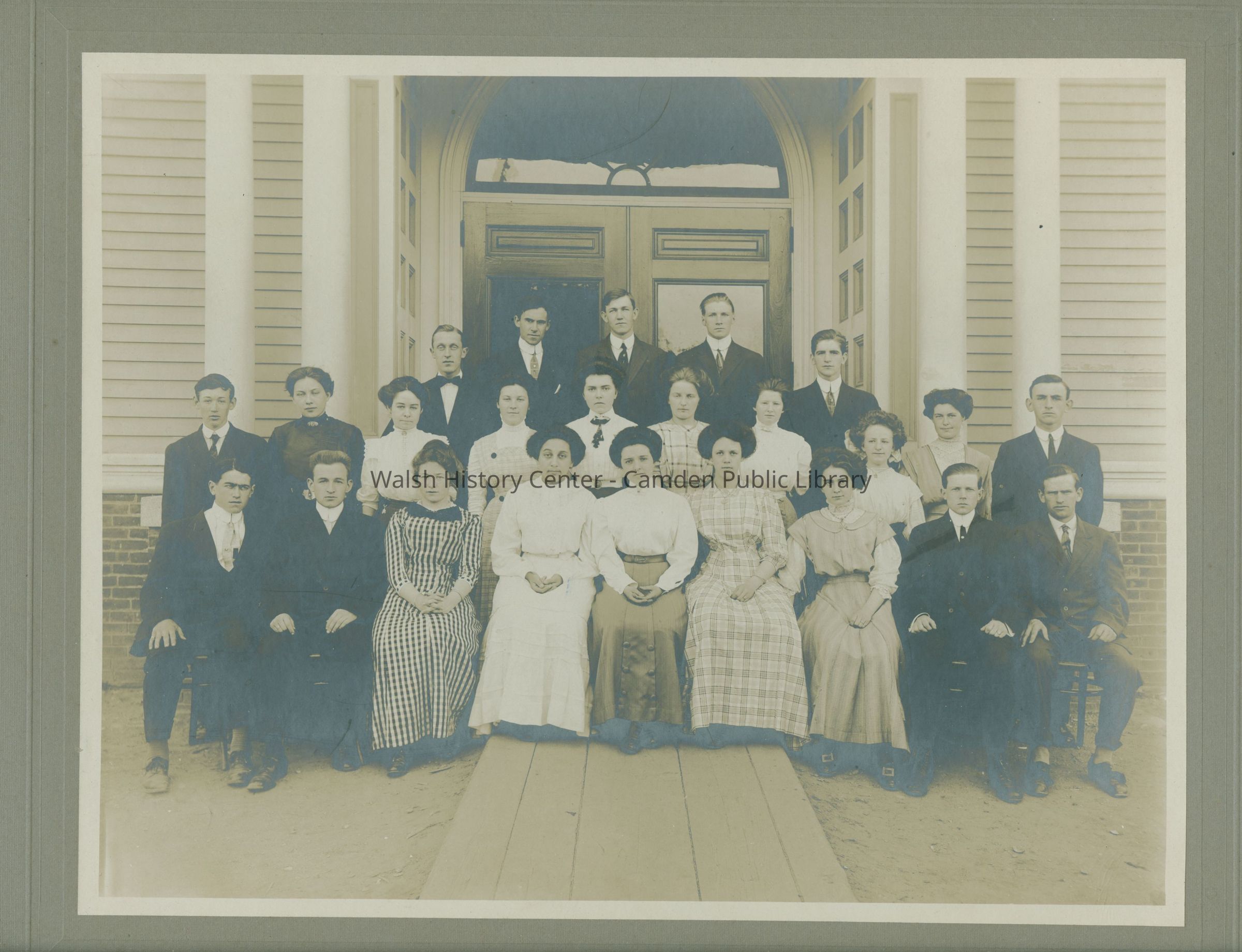 Photographic print of the 1910 Camden High School class in front of the Camden High School on Knowlton Street.Collection