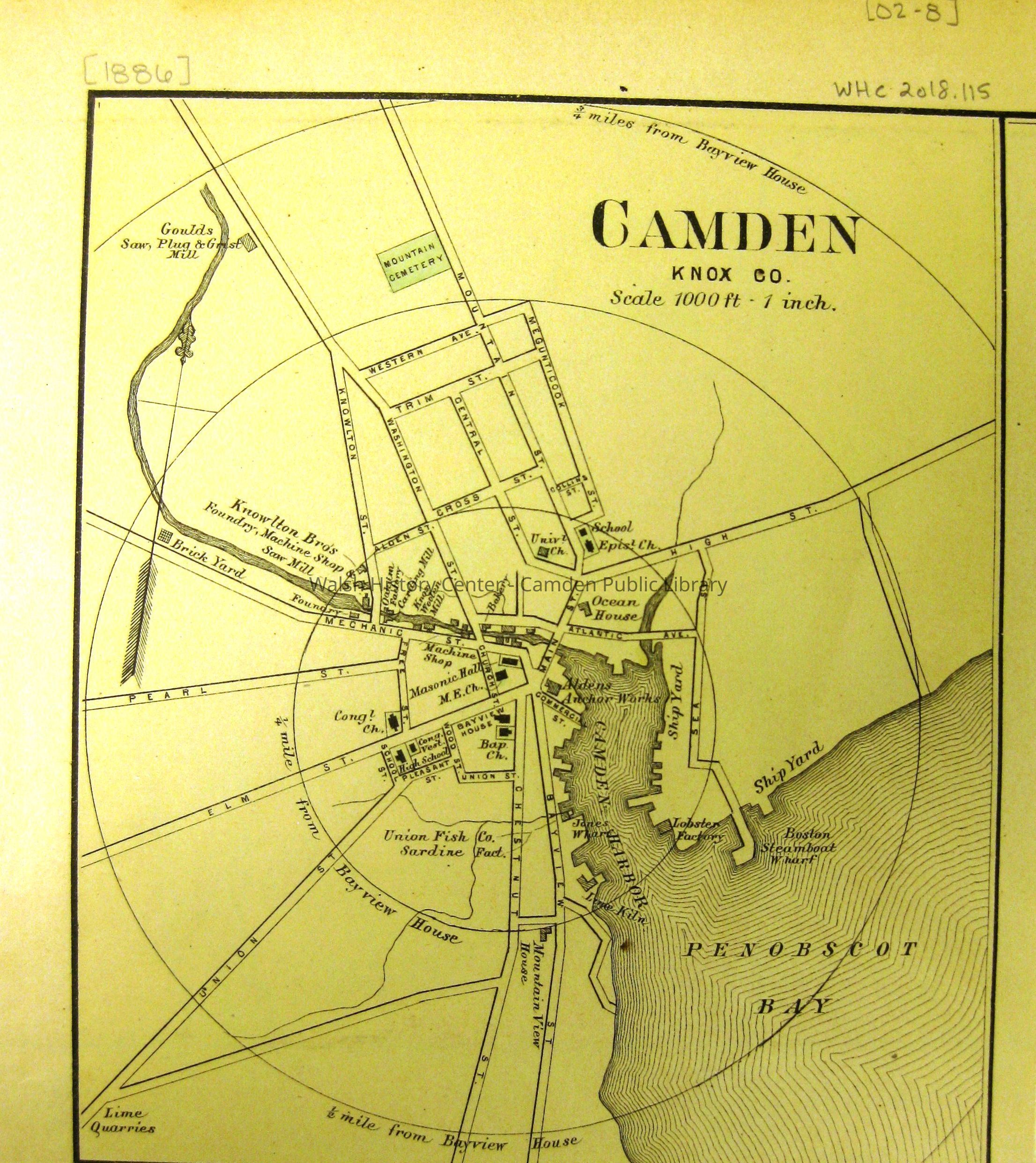 CAMDEN, KNOX COUNTY [1886], Maps, Bay View House, Village Green, Hotels, Businesses, ChurchesArchive Details