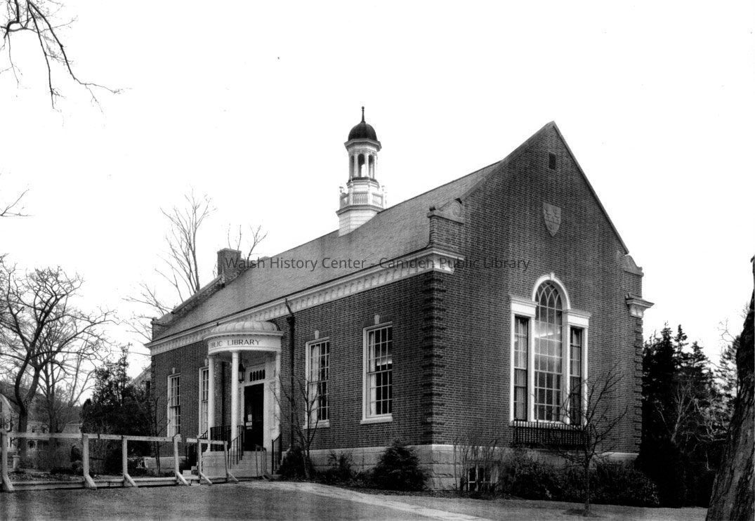 Scanned copy of black and white photogragh of Camden Public Libary before construction of addition. View of southwest corner of library.Collection