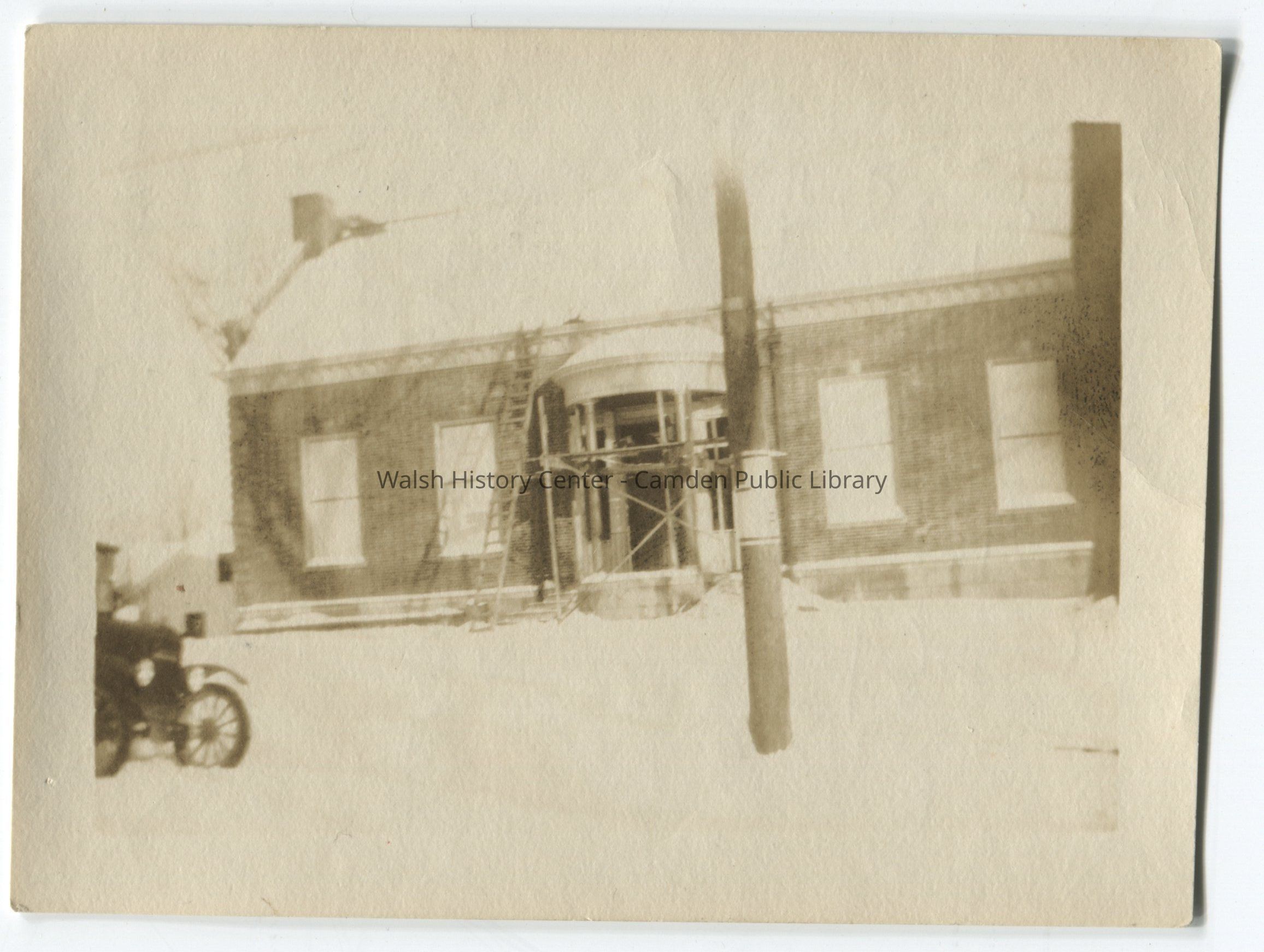 Photograph of the Camden Public Library under construction. William Hatch was the builder of the Camden Public Library in 1928. William Ellis Hatch of Camden, Maine, who was awarded the contract for the library, was a native of Islesboro, where he was a carpenter, builder, and operator of a lumber yard and hardware store. He moved to Camden in 1923. According to family records, his son, engineer Loranus P. Hatch, helped design the library "dome" (presumably the cupola).Collection