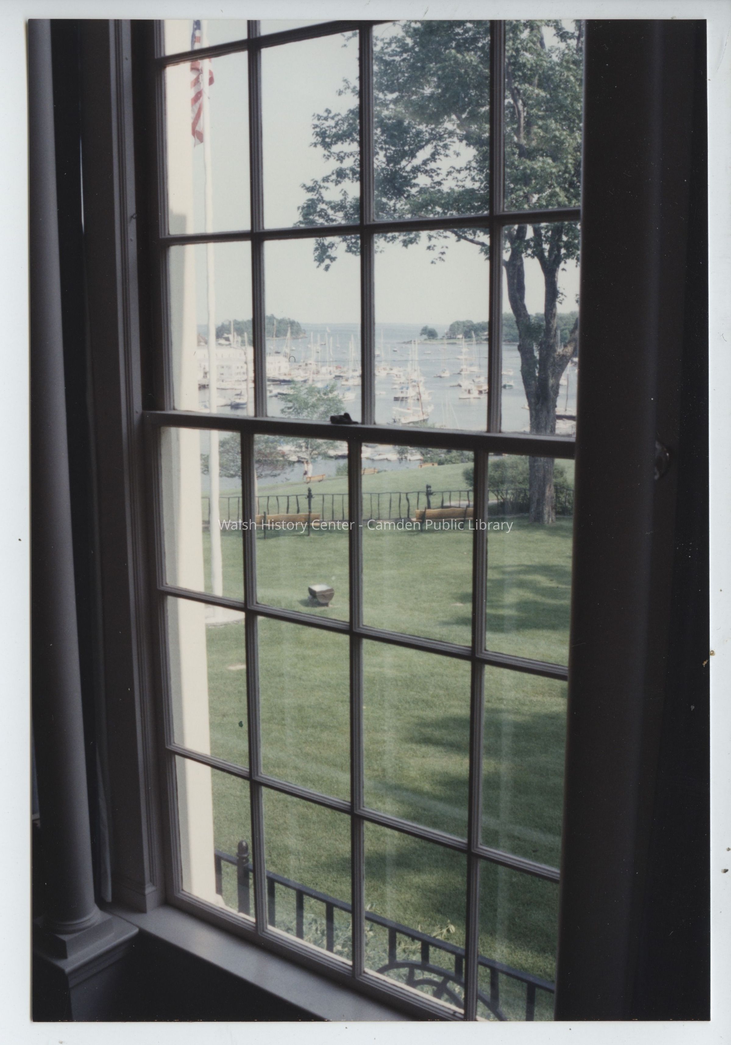 Photograph shows the south lawn of the Camden Public Library prior to the construction of the Centennial Wing c.1994/1995.Collection
