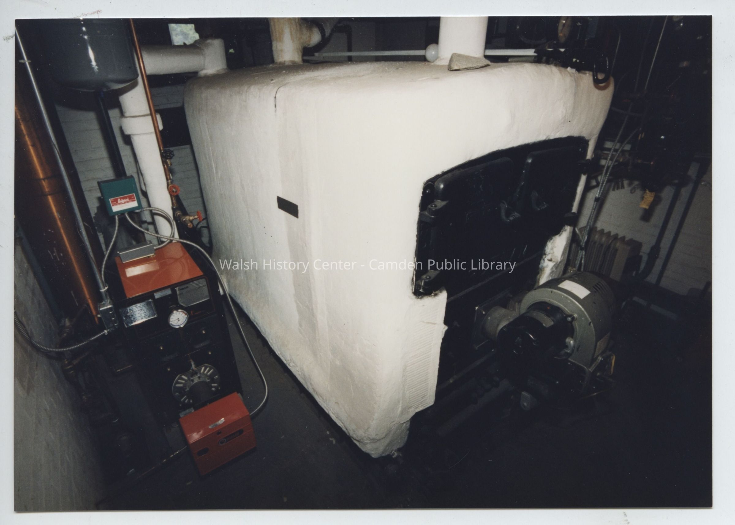 Photographs show the back entry to the Camden Public Library, the maintenance and supply rooms, and the furance room prior to the Centential Wing expansion c.1994/1995.Collection