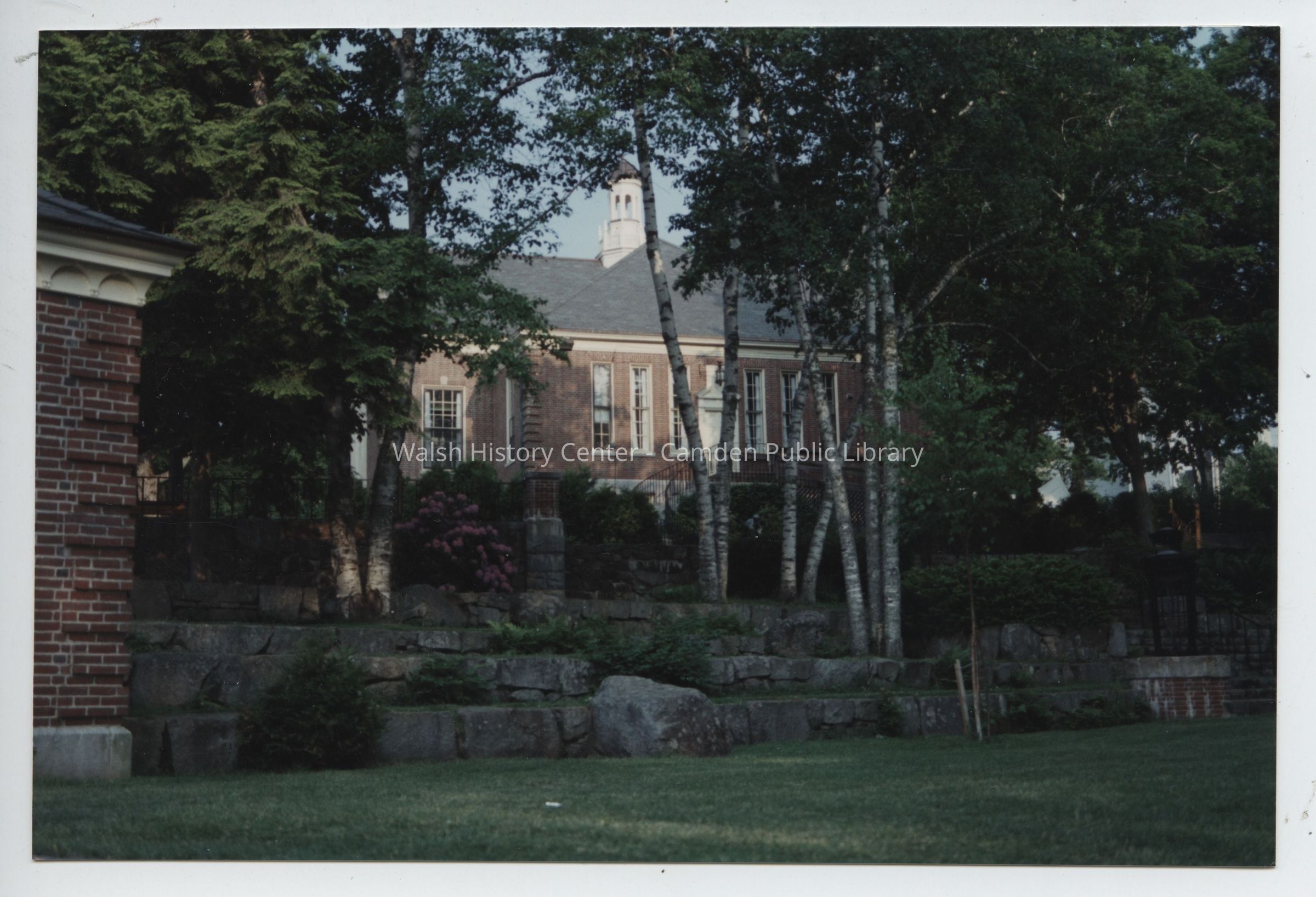 Photograph shows the back of the Camden Public Library, the faun garden, and the amphitheatre prior to the Centential Wing expansion c.1994/1995.Collection