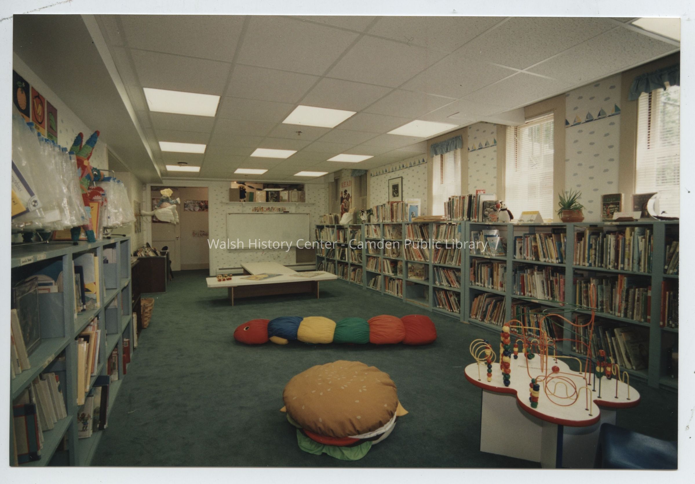 Photograph shows the Camden Public Library children's room (in the present-day Walsh History Center) prior to the Centential Wing expansion c.1994/1995.Collection