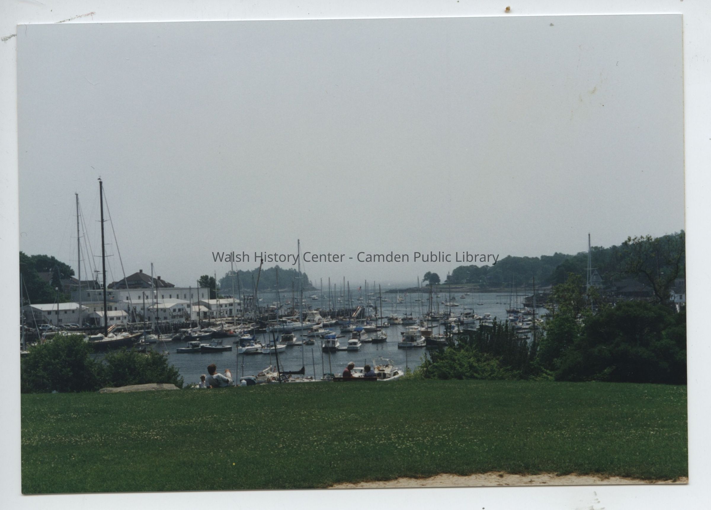 Photograph shows Camden Harbor Park across Atlantic Avenue from the Camden Public Library prior to the construction of the Centennial Wing c.1994/1995.Collection